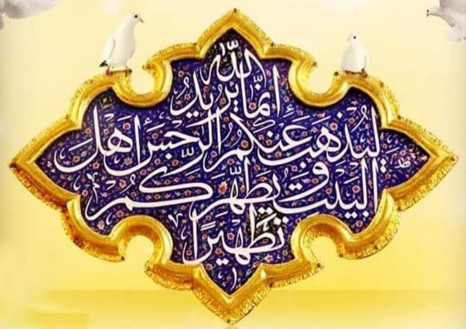 “إِنَّمَا يُرِيدُ اللَّهُ لِيُذْهِبَ عَنكُمُ الرِّجْسَ أَهْلَ الْبَيْتِ وَيُطَهِّرَكُمْ تَطْهِيرًا”؛ (سورہ احزاب، آیت۳۳)۔ یعنی بس اللہ کا ارادہ یہ ہے اے اہل بیت ؑ کہ تم سے ہر برائی کو دور رکھے اور اس طرح پاک و پاکیزہ رکھے جو پاک و پاکیزہ رکھنے کا حق ہے ۔